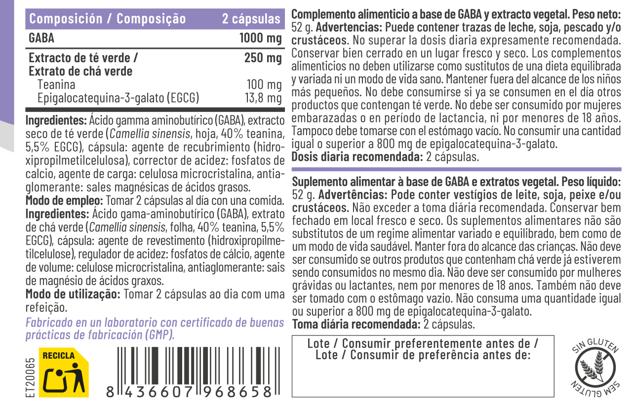 La L-teanina actúa sinérgicamente con GABA, potenciando sus efectos relajantes sin provocar somnolencia diurna. Contribuye a: