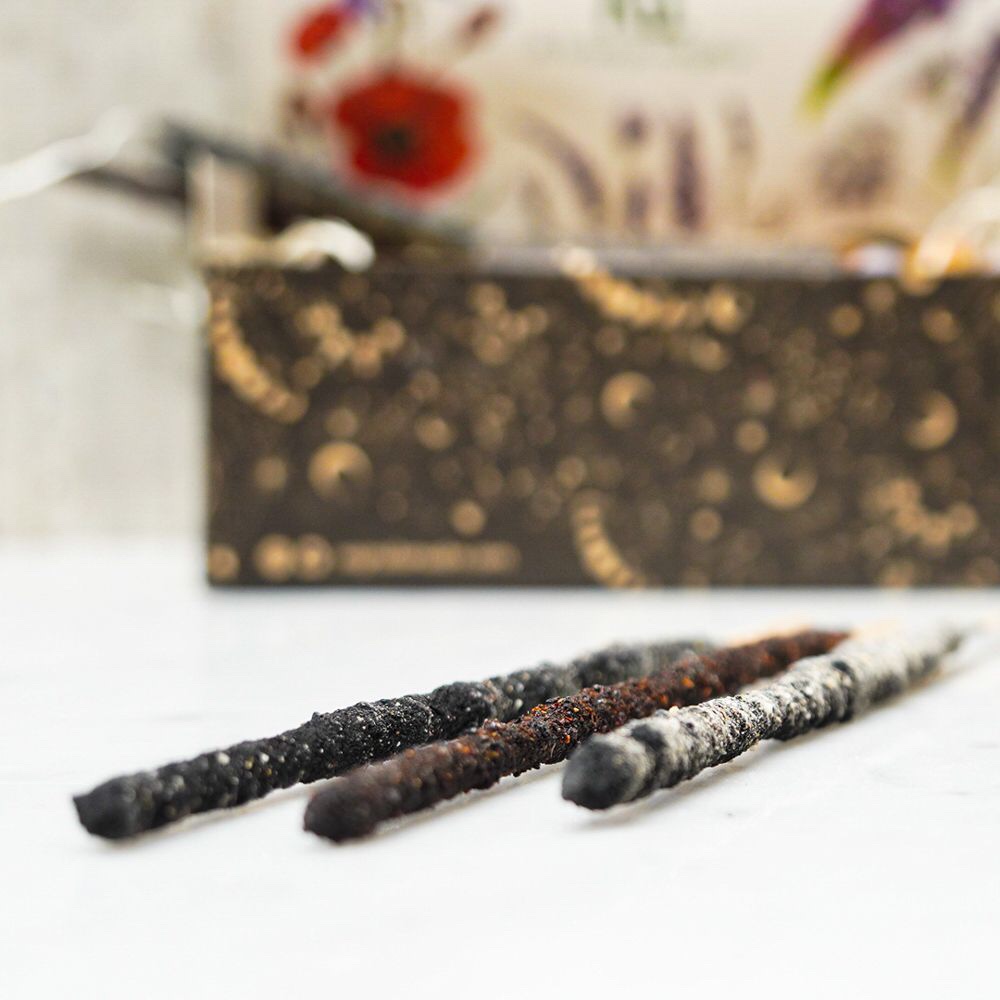 • Sahumerios de doble empaste de palo santo, incienso y mirra