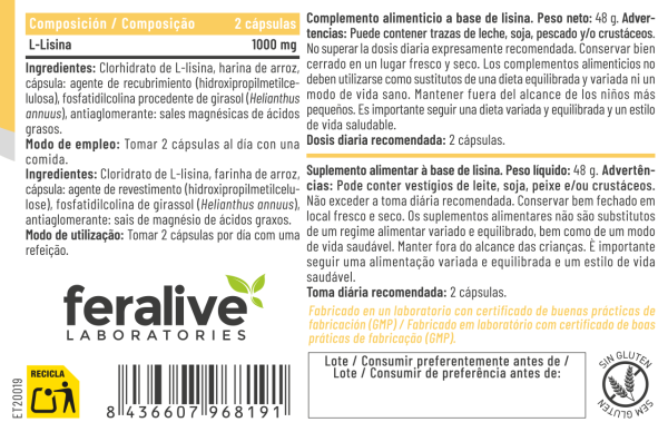 La tecnología liposomal encapsula la lisina en microvesículas que protegen el activo frente a la degradación digestiva y favorecen su absorción intestinal. Este sistema mejora la disponibilidad celular y permite aprovechar mejor sus beneficios frente a formas convencionales.