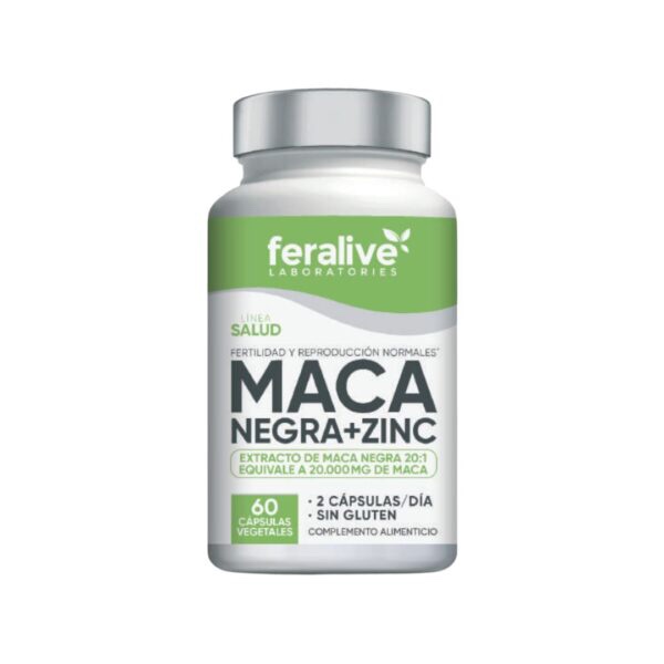 Complemento alimenticio formulado a partir de extracto concentrado de maca negra (Lepidium meyenii) y zinc en forma de bisglicinato, una combinación diseñada para apoyar el rendimiento físico y mental, la vitalidad y la función reproductiva, tanto en hombres como en mujeres.