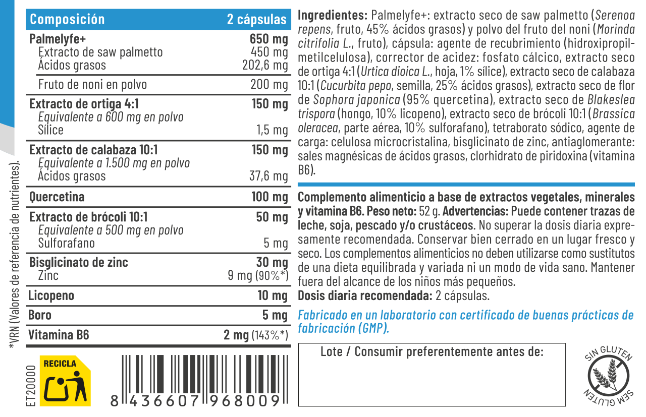 •PalMelyfe+ (saw palmetto + noni): contribuye al mantenimiento de la función prostática normal y al confort urinario, ayudando a reducir molestias asociadas a la edad.